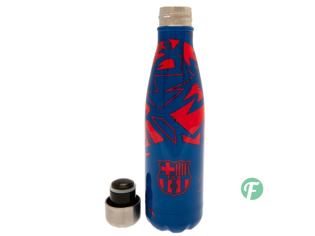 Stylová láhev na pití se znakem FC Barcelona je vyrobena z odolné nerezové oceli a díky vakuové izolaci udrží tvůj oblíbený nápoj teplý nebo studený až 24 hodin. Má praktické šroubovací víčko, snadno se vejde do batohu nebo držáku na pití a svým červo-modrým designem s ikonickým znakem klubu Barcelona dá všem jasně najevo, komu fandíš.