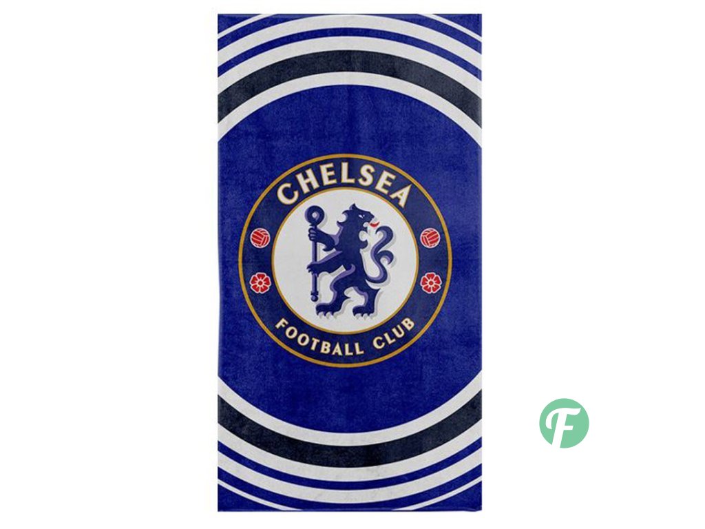Oficiální ručník, doplňkové a sportovní zboží z katalogu produktů se znakem nebo grafikou v klubových barvách slavného fotbalového klubu FC Chelsea.
