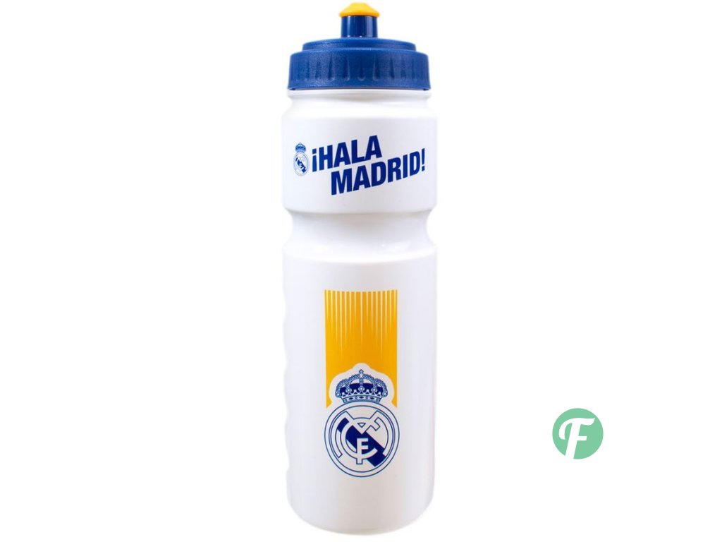 Oficiální produkt - láhev na pití z katalogu zboží s licencí fotbalového klubu FC Real Madrid.