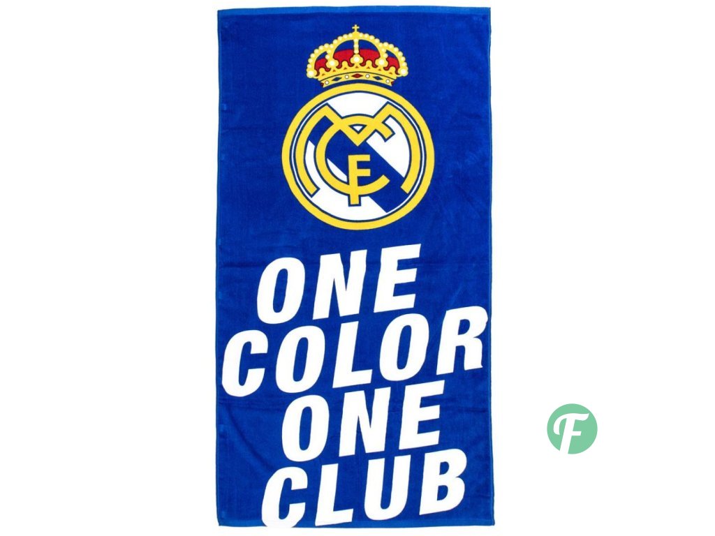 Kvalitní modrý ručník/osuška s grafikou hlavního loga fotbalového týmu FC Real Madrid a nápisu: ,,One Color, One Club'' v bílé barvě. Osuška je vhodným dárkem pro všechny menší i větší fotbalové nadšence.